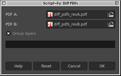 When you select "Filters -> Diff PDFs…" the "Script-Fu: Diff PDFs" dialog will ask for version A and version B of the PDFs.