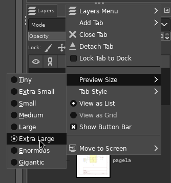 When the script is done, all the layers will be ready to use. You can increase the size of the layer preview thumbnail in this rather hidden menu (the left pointing arrow button on the top right of this screenshot):